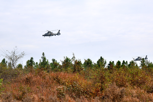 第73集团军某合成旅近日在某陌生地域组织实弹射击考核,全面检验部队实战化训练水平。图为武装直升机超低空抵近战场。刘志勇 摄