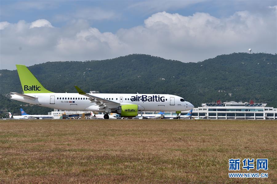 11月5日,参展的空客A220飞机抵达珠海机场。