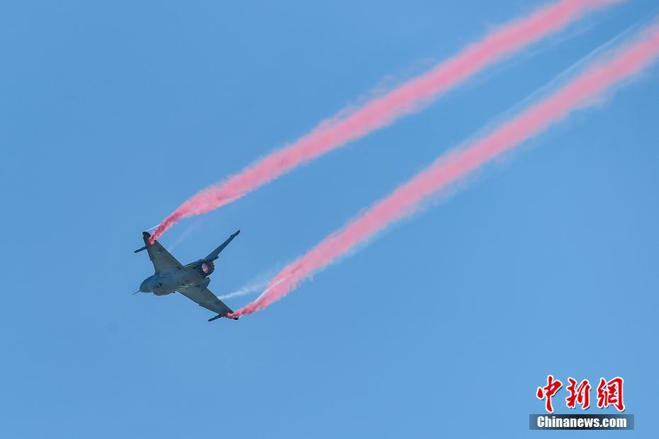 11月6日,歼-10B推力矢量验证机进行飞行表演。当日,第十二届中国国际航空航天博览会在珠海开幕。中新社记者 陈骥旻 摄