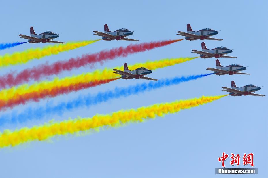 11月6日,空军航空大学红鹰表演队在第十二届中国国际航空航天博览会上作动态展示。当日,第十二届中国国际航空航天博览会在珠海开幕。中新社记者 陈骥旻 摄