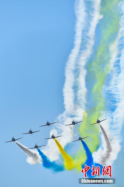 11月6日,空军航空大学红鹰表演队在第十二届中国国际航空航天博览会上作动态展示。当日,第十二届中国国际航空航天博览会在珠海开幕。中新社记者 陈骥旻 摄