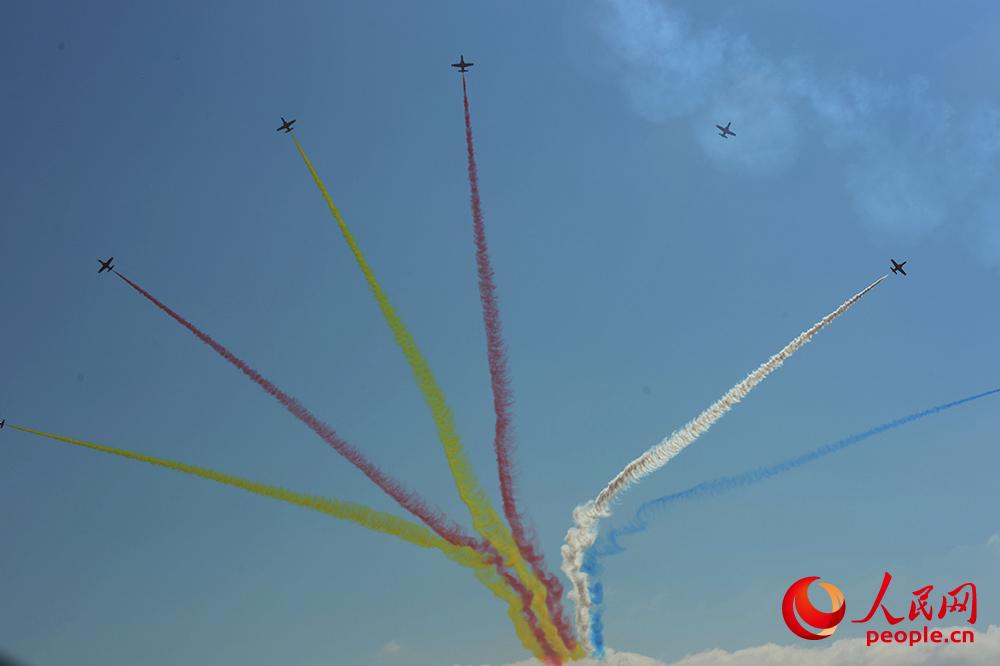 空军航空大学“红鹰”飞行表演队在第十二届中国航展开幕式上进行了飞行表演。闫嘉琪摄