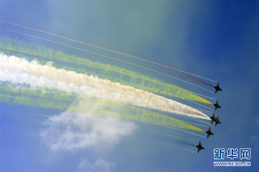 11月6日,中国空军八一飞行表演队在航展现场进行飞行表演。当日,第十二届中国国际航空航天博览会在珠海开幕。 新华社记者刘芳摄