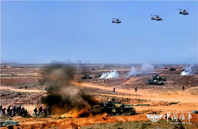 ▲ 踏破贺兰山阙,陆军某部在西北戈壁组织实兵实弹演练。(王英楠 摄)