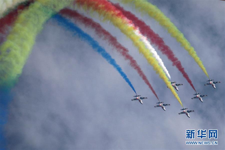 11月9日,空军航空大学“红鹰”飞行表演队在航展公众开放日第一天进行飞行表演。新华社记者刘芳摄