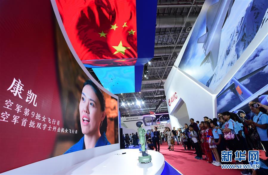 蓝天春蕾女童在航展现场参观(11月10日摄)。 空军近年来积极参与打赢脱贫攻坚战工作,依托“六项工程”先后实施269个扶贫项目,参与帮扶117个贫困村、5711个贫困户,把党和军队的温暖送到了群众心坎上。 新华社发(陈艺 摄)