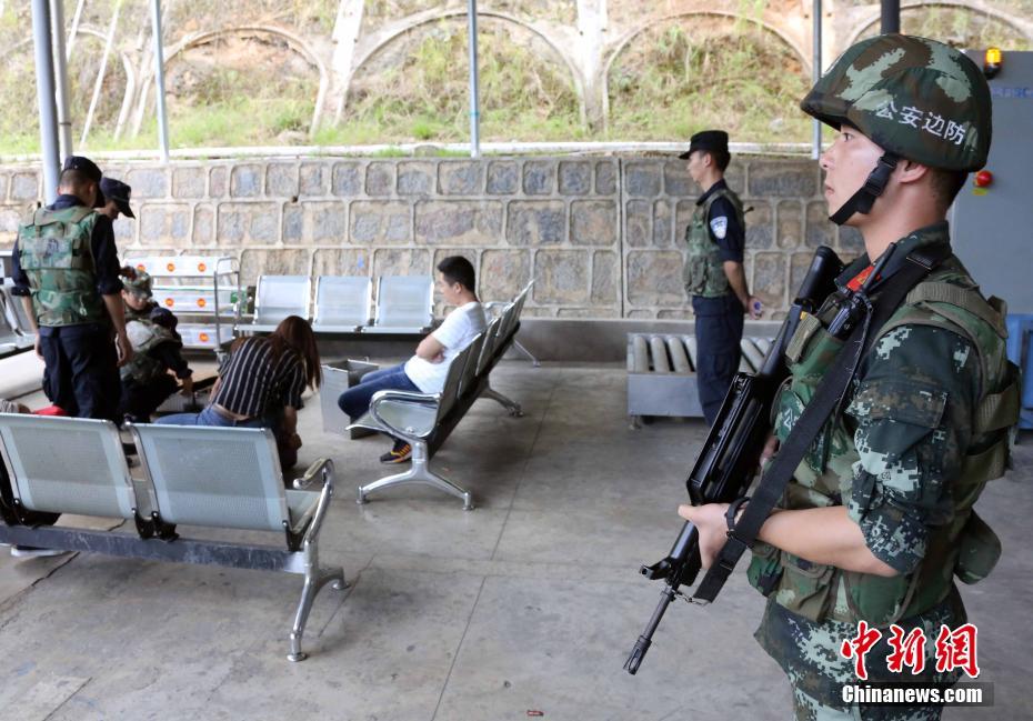 云南保山公安边防支队芒颜边境检查站的官兵进行例行检查。中新社记者 任海霞 摄