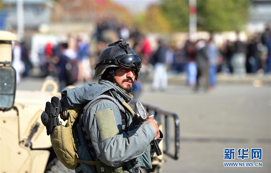 11月12日,在阿富汗首都喀布尔,安全人员在集会现场警戒。新华社记者代贺摄