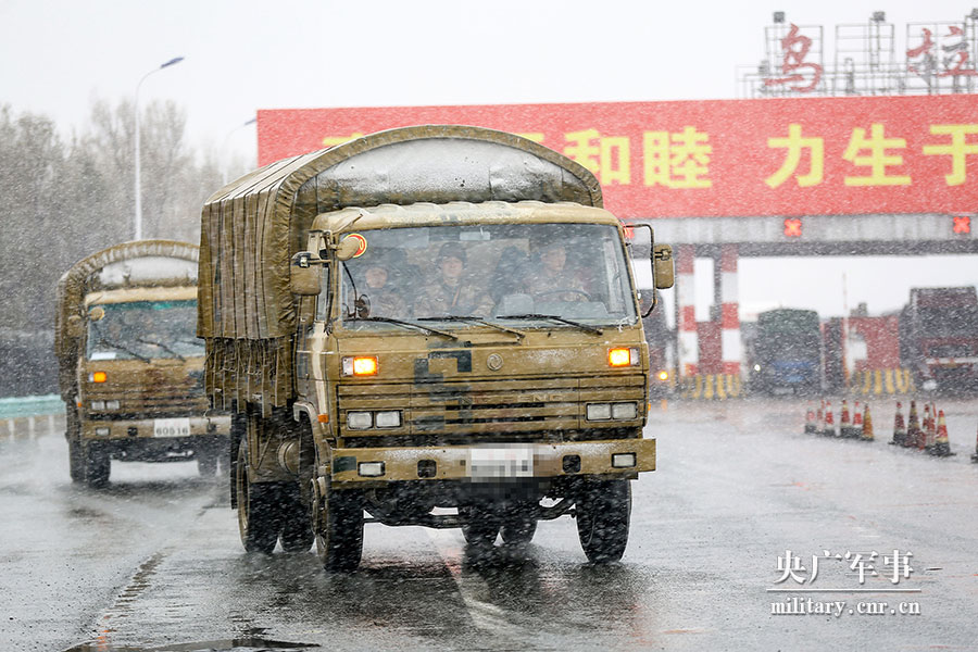 新疆军区某师进行战备拉动考核,图为车辆快速向预定地域机动。刘光荣摄
