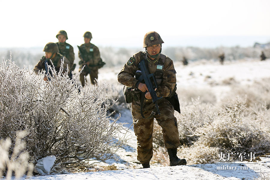 新疆军区某师进行战备拉动考核,图为官兵快速向射击地线前进。刘光荣摄