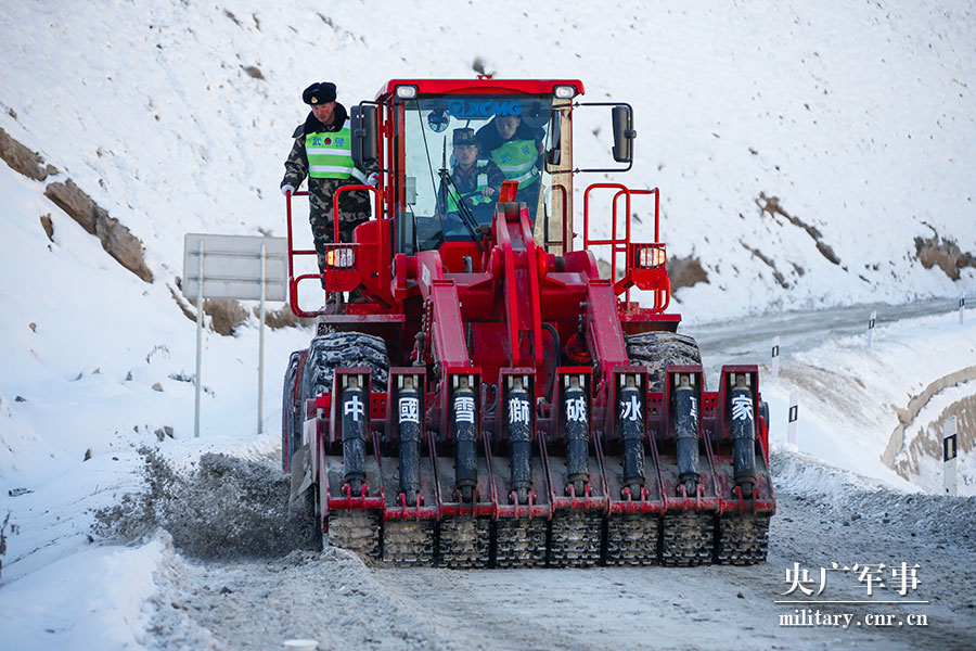 新藏线结冰致交通受阻 武警官兵鏖战6小时抢通道路