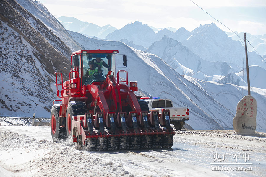 新藏线结冰致交通受阻 武警官兵鏖战6小时抢通道路
