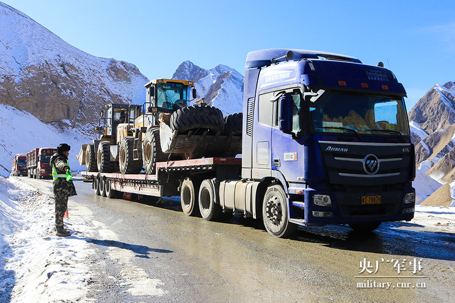 新藏线结冰致交通受阻 武警官兵鏖战6小时抢通道路