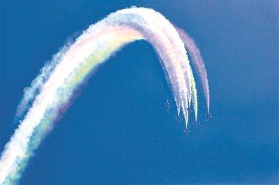 11月7日,空军八一飞行表演队进行六机向下筋斗特技飞行。