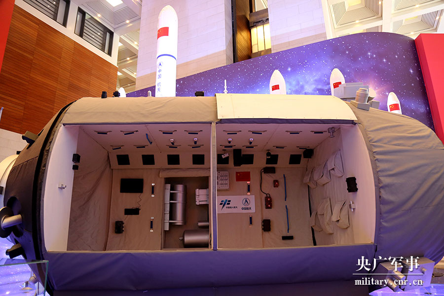 “天宫二号”空间实验室透视模型展示。杨宸琇 摄
