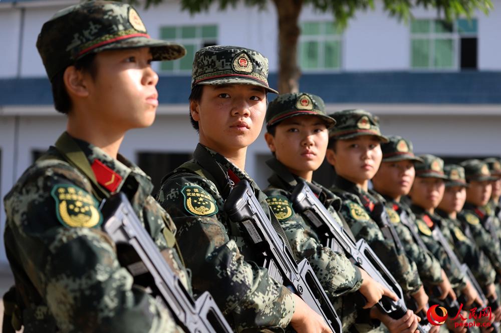 2018年11月27日,武警女兵英姿飒爽的进行训练。