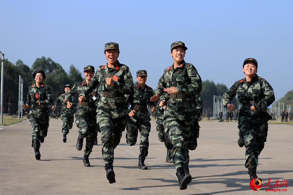 2018年11月27日,武警女兵在进行训练前热身跑。