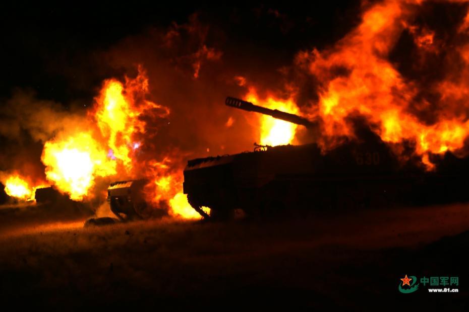 某型榴弹炮夜间射击发射瞬间。张正举 张云靖浩 余小平 摄影报道 图片来源:中国军网