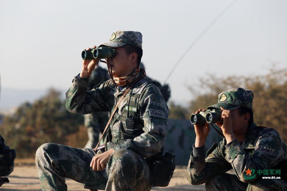 观察员在观察炸点。张正举 张云靖浩 余小平 摄影报道 图片来源:中国军网