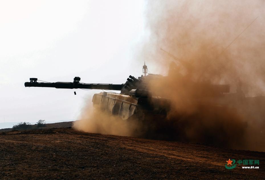 一辆占领高地的“红军”坦克在行驶途中。张正举 张云靖浩 余小平 摄影报道 图片来源:中国军网