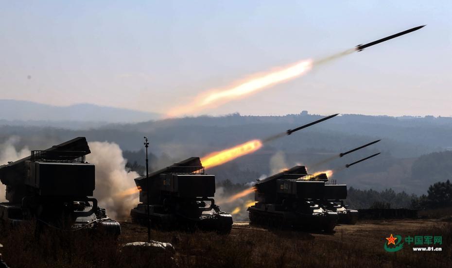 某型火箭炮实弹发射瞬间。张正举 张云靖浩 余小平 摄影报道 图片来源:中国军网