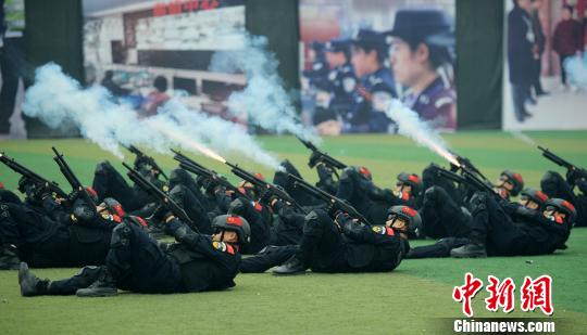彭山警方展示防爆枪技战术队形。 刘忠俊 摄