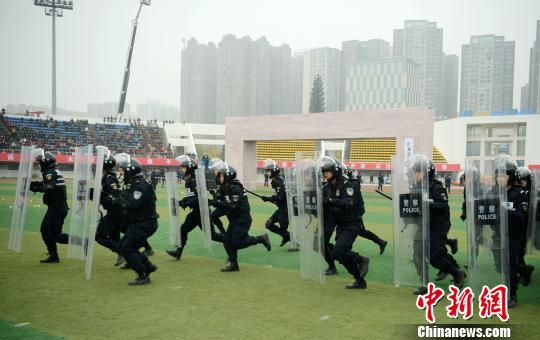 眉山警方展示快反突击。 刘忠俊 摄
