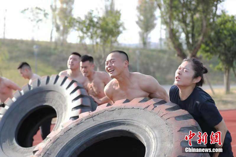 翻210公斤轮胎训练。 唐琪 摄
