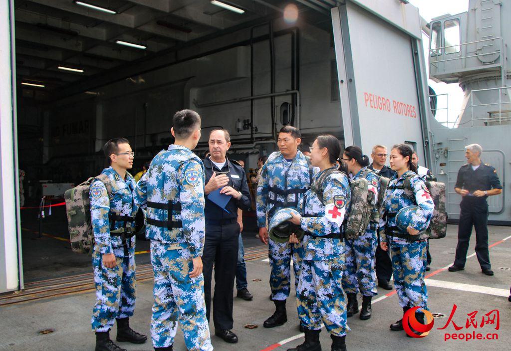 我医疗分队前出至西班牙海军“卡斯蒂拉”号登陆舰。刘吉 摄