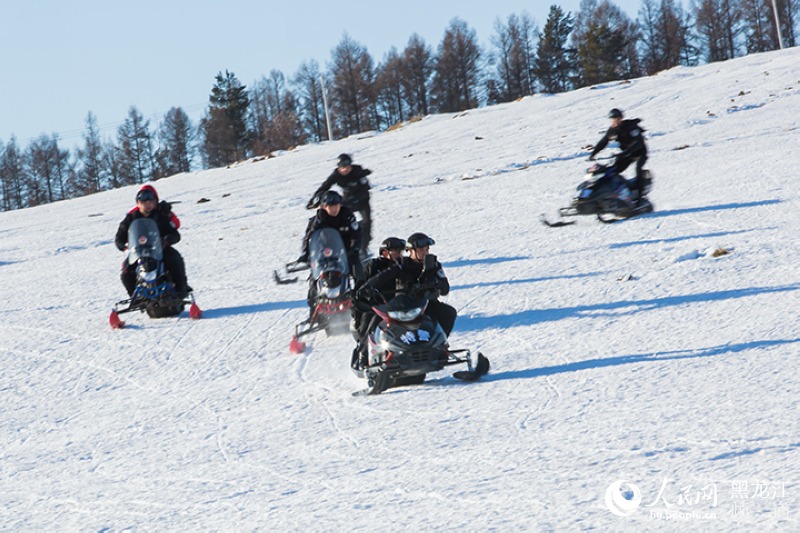 人民网哈尔滨12月4日电(汪晓涛)日前,哈尔滨市公安局巡特警支队在冬训练兵活动中,通过开展雪地摩托车驾驶、战术射击、耐寒搏击、极限体能、硬气功以及特技驾驶、追捕、山林地捕歼,直升机索降等科目训练,进一步提升了冰城特警处置突发性事件的能力,检验了他们在严寒条件下的实战技能。