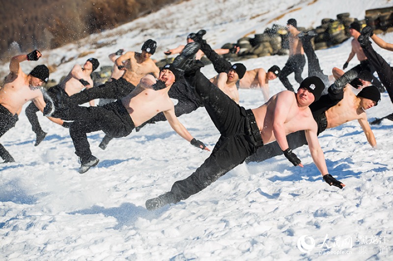 人民网哈尔滨12月4日电(汪晓涛)日前,哈尔滨市公安局巡特警支队在冬训练兵活动中,通过开展雪地摩托车驾驶、战术射击、耐寒搏击、极限体能、硬气功以及特技驾驶、追捕、山林地捕歼,直升机索降等科目训练,进一步提升了冰城特警处置突发性事件的能力,检验了他们在严寒条件下的实战技能。