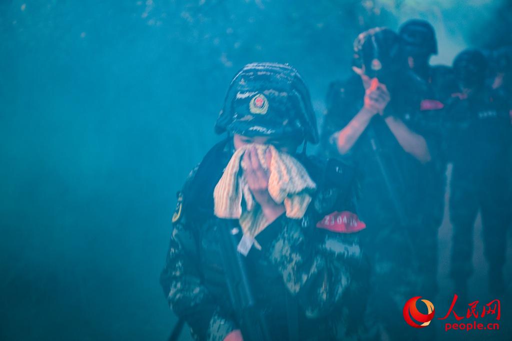 特战队员快速通过染毒地带。