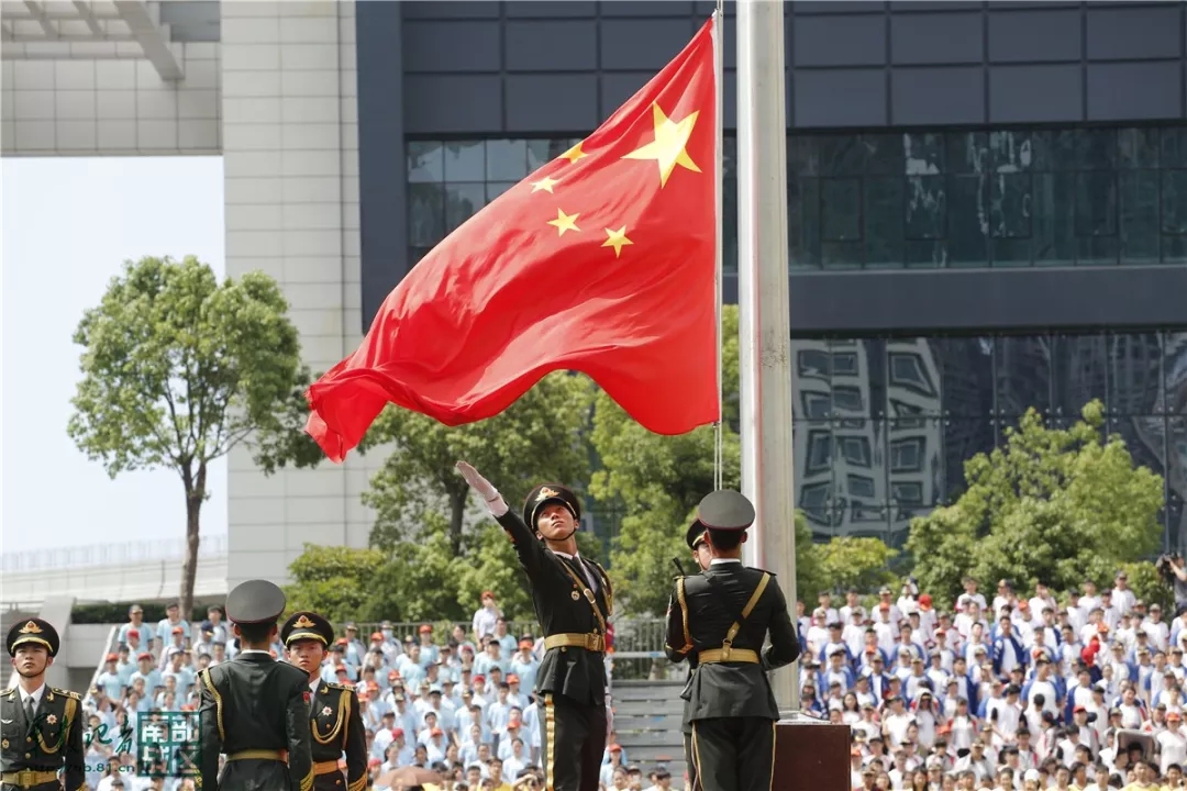 ▲军营开放日驻澳门部队官兵升正在进行举行国旗仪式