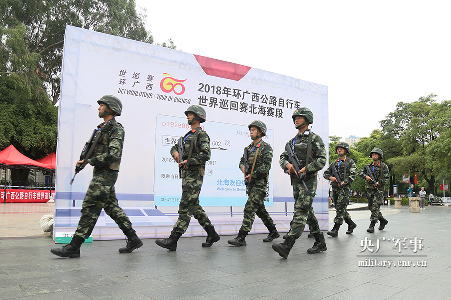 10月16日,支队官兵在“环广西公路自行车世界巡回赛”北海赛段周边巡逻执勤。