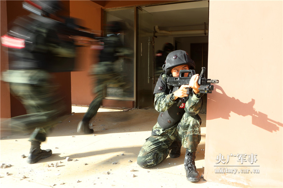 特战队员在队友的掩护下快速进入目标藏匿区域。雷辙摄