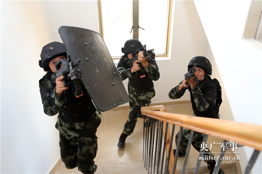 特战队员在独立房内交替掩护搜索。雷辙摄