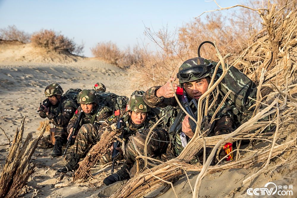 近日,武警阿克苏支队开展了七天六夜的“魔鬼周”极限训练,利用沙漠、戈壁、废弃工厂等环境,采取红蓝对抗演练、预设假想敌等模式,完成了武装奔袭、负重行军、沙漠捕歼战斗、极限体能、野外生存等20多个科目的训练,全面锻造和锤炼反恐维稳的尖刀铁拳。(图片由武警阿克苏支队魏福明、王子阳提供)