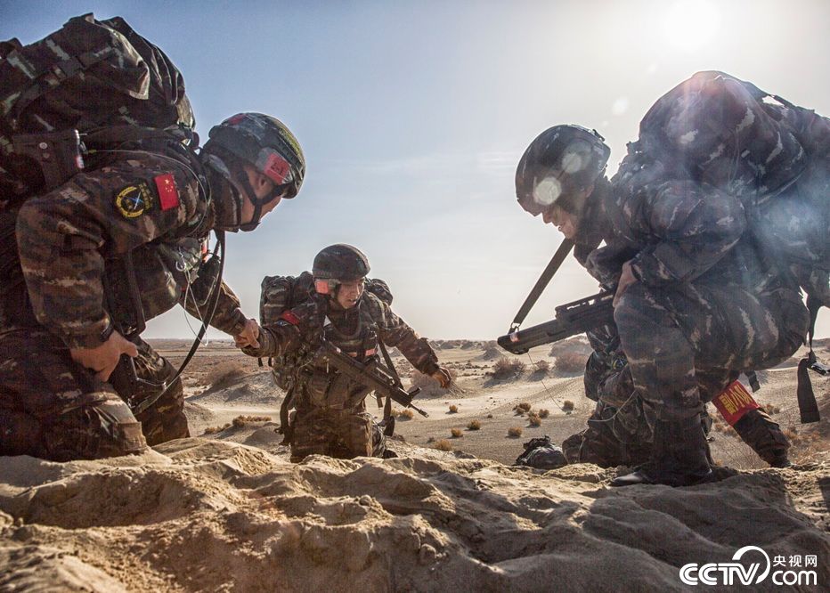 近日,武警阿克苏支队开展了七天六夜的“魔鬼周”极限训练,利用沙漠、戈壁、废弃工厂等环境,采取红蓝对抗演练、预设假想敌等模式,完成了武装奔袭、负重行军、沙漠捕歼战斗、极限体能、野外生存等20多个科目的训练,全面锻造和锤炼反恐维稳的尖刀铁拳。(图片由武警阿克苏支队魏福明、王子阳提供)