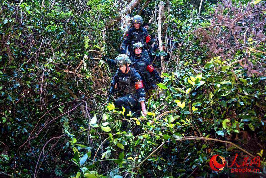 特战队员穿越山林地。田星 摄