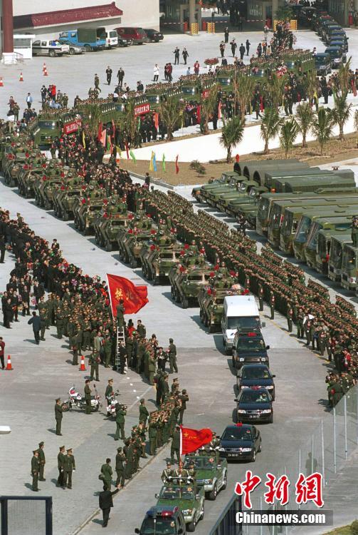 改革开放40年来,中国人民解放军坚定不移走中国特色强军之路,全面推进国防和军队现代化。这支威武之师走过了波澜壮阔的光辉岁月,正朝着建设世界一流军队的目标不断奋进。1999年12月20日中午12时,中国人民解放军驻澳门部队经关闸进入澳门。中新社记者 毛建军 摄 (图文整理 满会乔)