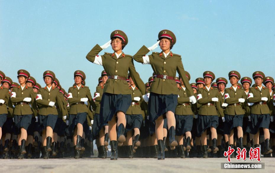 改革开放40年来,中国人民解放军坚定不移走中国特色强军之路,全面推进国防和军队现代化。这支威武之师走过了波澜壮阔的光辉岁月,正朝着建设世界一流军队的目标不断奋进。1984年,中华人民共和国国庆35周年阅兵在北京举行。图为女卫生兵方队。中新社发 乔天富 摄 (图文整理 满会乔)