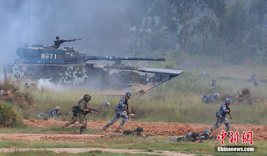 改革开放40年来,中国人民解放军坚定不移走中国特色强军之路,全面推进国防和军队现代化。这支威武之师走过了波澜壮阔的光辉岁月,正朝着建设世界一流军队的目标不断奋进。2016年9月14日,参加中俄“海上联合-2016”军事演习的双方海军陆战队,联合进行了对海岛进攻战斗战术综合演练。中新社记者 韩海丹 摄 (图文整理 满会乔)