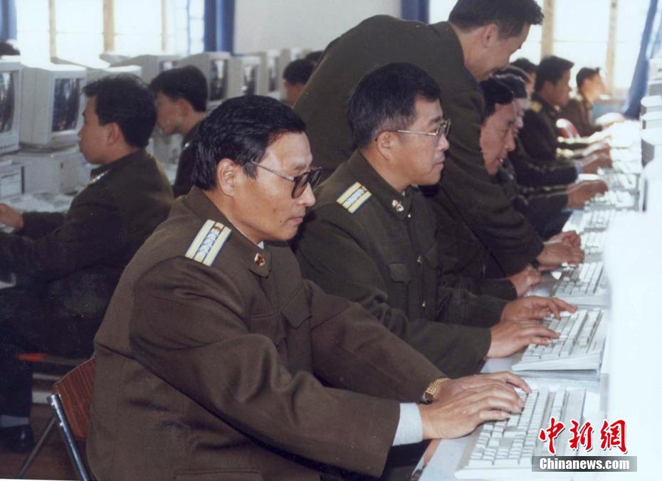 改革开放40年来,中国人民解放军坚定不移走中国特色强军之路,全面推进国防和军队现代化。这支威武之师走过了波澜壮阔的光辉岁月,正朝着建设世界一流军队的目标不断奋进。1999年,解放军空军第二航空学院院长董钢铁(左一)、政委贾树栋(左二)和机关干部集中学习电脑知识。中新社发 吉良航 摄 (图文整理 满会乔)