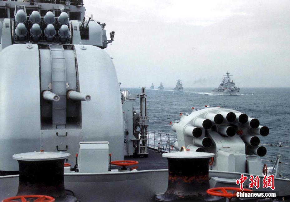 改革开放40年来,中国人民解放军坚定不移走中国特色强军之路,全面推进国防和军队现代化。这支威武之师走过了波澜壮阔的光辉岁月,正朝着建设世界一流军队的目标不断奋进。1999年,中国人民解放军北海舰队在“八一 ”前夕,进行了一次由水面舰艇、潜艇、飞机等多种兵力参加的海上练兵活动。中新社发 王松岐 摄 (图文整理 满会乔)