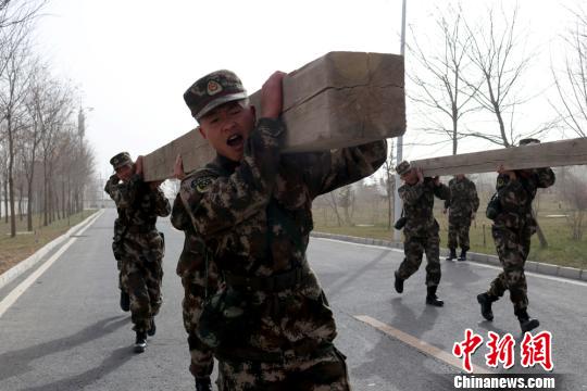 图为扛方木训练。 祁炳傑 摄