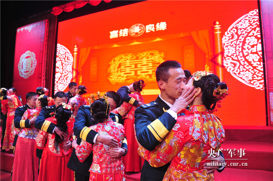 一对新人拥有一份愿景,一句情话饱含一份期待。当该旅上士何鹏手牵新娘走到台前讲述“爱情宣言”时,台下响起一阵欢腾掌声。原来,新娘孟祥艳是该旅一位退伍导弹女兵,此次她既是“嫁入军营”,又是“回娘家探亲”。她说,褪下军装、换上红装,自己会守好个人的小家,心连心默默支持丈夫守护祖国大家。