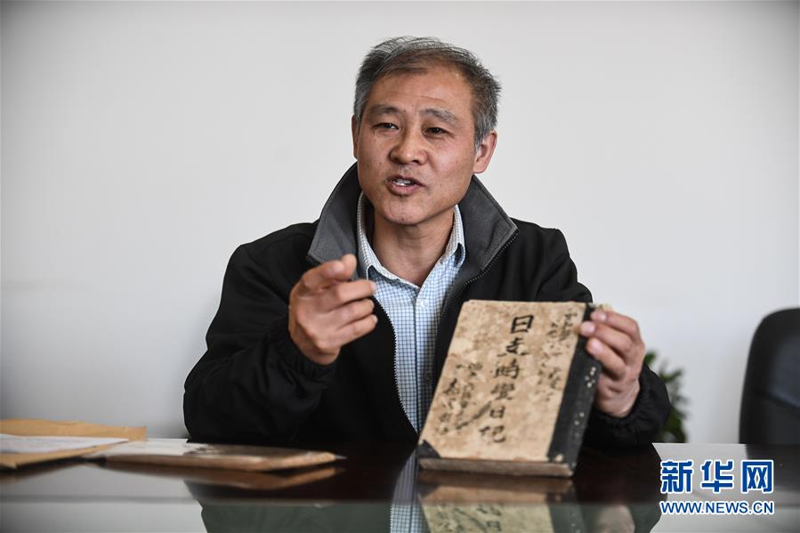 辽宁省本溪市收藏爱好者毛伟介绍他收藏的《日支时变日记》(2017年12月9日摄)。