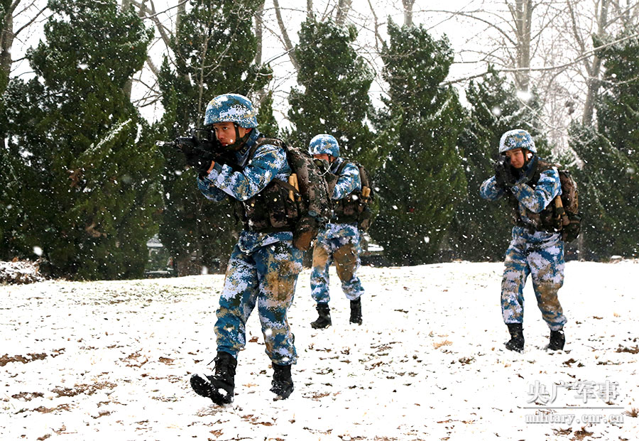战风斗寒!看海军陆战队官兵野外浴“雪”奋战