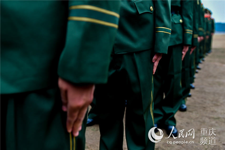 12月13日,武警重庆总队新兵团新兵在授衔仪式中身姿挺拔、体态端正。唐炜东 摄
