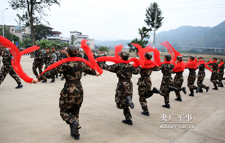 女兵跳起欢快的舞蹈迎接战友。唐震宇摄